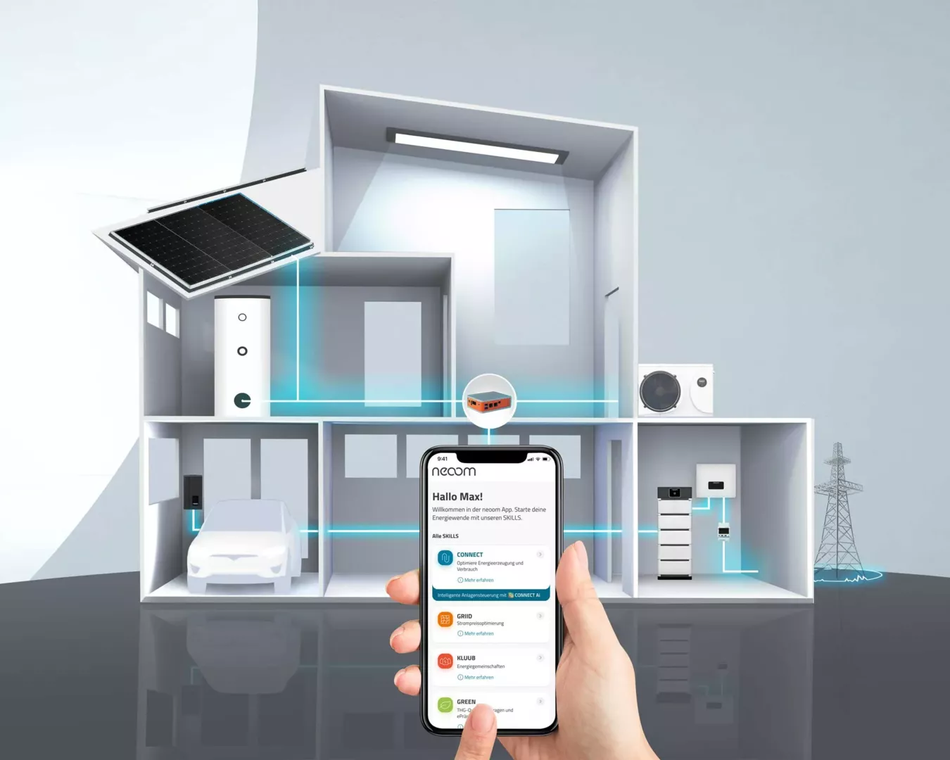 Um unseren Kunden noch mehr Flexibilität und maßgeschneiderte Lösungen im Bereich erneuerbare Energien zu bieten, arbeiten wir ab sofort mit Neoom zusammen. Als Spezialist für Energiemanagementsysteme ergänzt Neoom unser Portfolio perfekt und ermöglicht uns, noch gezielter auf individuelle Anforderungen einzugehen.
