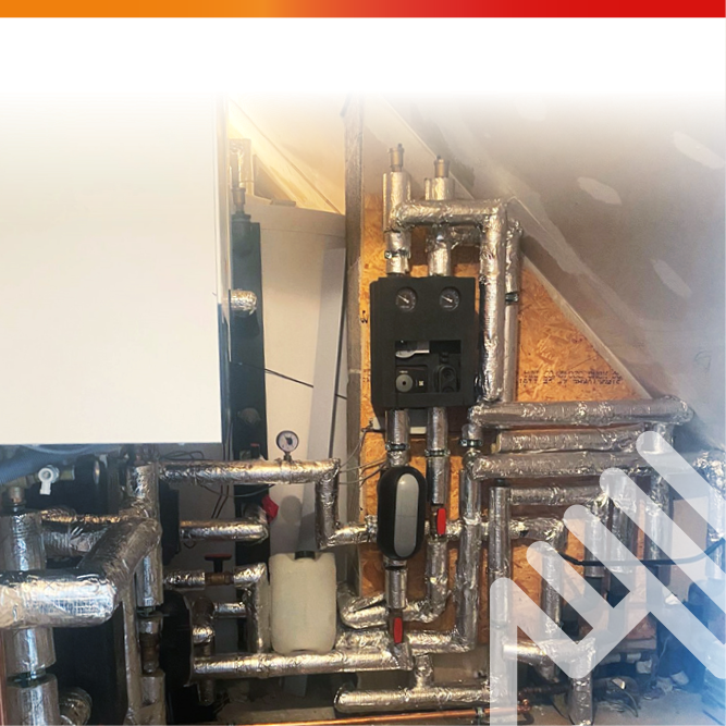 Das Konzept umfasst eine Luft-Wärmepumpe mit Pufferspeicher und Trinkwasserstation, die zur Nutzung überschüssiger Solarenergie optimiert ist. Die vorhandene Solarthermieanlage wurde dabei vollständig in das System integriert, sodass eine maximale Energieeffizienz erreicht wird. Die Montage erfolgte unter beengten Platzbedingungen, konnte aber ohne Vergrößerung der ehemaligen Technikflächen realisiert werden. Auch eine Wallbox für die E-Mobilität ist Teil der Anlage und stellt sicher, dass die Haushalts- und Fahrzeugenergieversorgung vollständig durch erneuerbare Energien gedeckt werden kann.