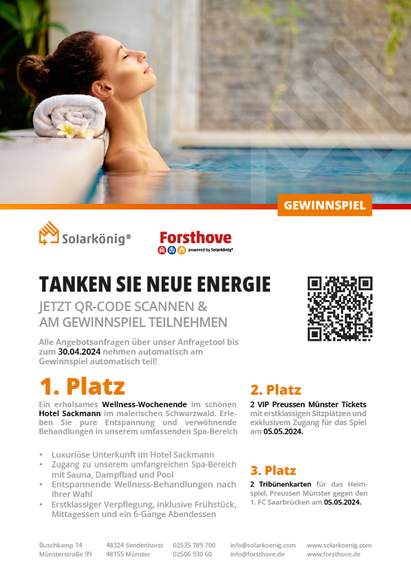 Aber das ist noch nicht alles! Jede unverbindliche Anfrage über unser Anfrage-Tool auf unserer Website nimmt automatisch an unserem hochwertigen Gewinnspiel teil. Wir haben großartige Preise für Sie: